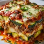 A comforting casserole featuring zucchini, seasoned ground meat, marinara, and melted cheese, perfect for a guilt-free pizza night.