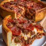 Imagine the moment when you pull that steaming hot pan of Chicago-style deep-dish pizza from the oven, the aroma wafting through your kitchen, wrapping you in a warm, cheesy embrace. The crust, golden and flaky, beckons as you slice into it, revealing layers of gooey mozzarella, savory Italian sausage, and zesty pepperoni, all drenched in a rich, fragrant tomato sauce. Each bite carries a delightful crunch followed by the melty goodness of cheese, perfectly balanced with the herbaceous notes from Italian seasoning. It’s comfort food at its finest, a dish that turns a simple dinner into a weekend celebration.