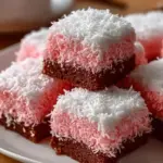 The sun peeks through the kitchen window, casting a warm glow on the counter where a delightful creation awaits its moment to shine. The swirling aroma of baked chocolate wafts through the air, mingling with the sweet, tropical notes of coconut. As you cut into the Pink Coconut Snowball Cake Bars, a stunning contrast unfurls before your eyes—a rich, velvety chocolate base welcomes a fluffy layer of glossy coconut topping, tinged with a playful blush of pink.
