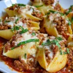 Lifting the lid on a bubbling baking dish, a wave of aromas wafts through the air—garlic, rich marinara, and melty cheese. The golden, crusty top beckons, promising a delightful experience beneath the surface. As you dive into the dish, the tender pasta shells cradle a luscious filling of seasoned ground beef and creamy ricotta. Each bite unfolds layers of flavor that dance harmoniously on your palate, creating a symphony of savory satisfaction. Stuffed pasta shells don’t just fill your stomach; they wrap you in a warm embrace of comfort, nostalgia, and pure joy.